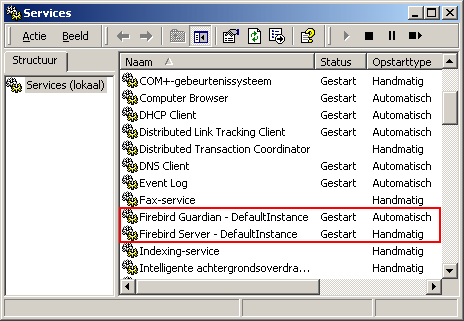 Il server Firebird dovrebbe comunque esserci nell'elenco dei servizi. Il Guardian potrebbe invece non essere attivo, in funzione delle scelte effettuate durante l'installazione.